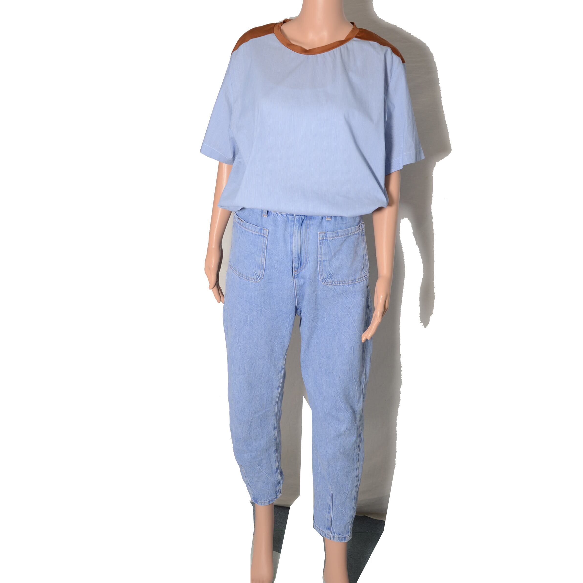 素材はシャツ生地で前面にポケットがあるデザインです。
